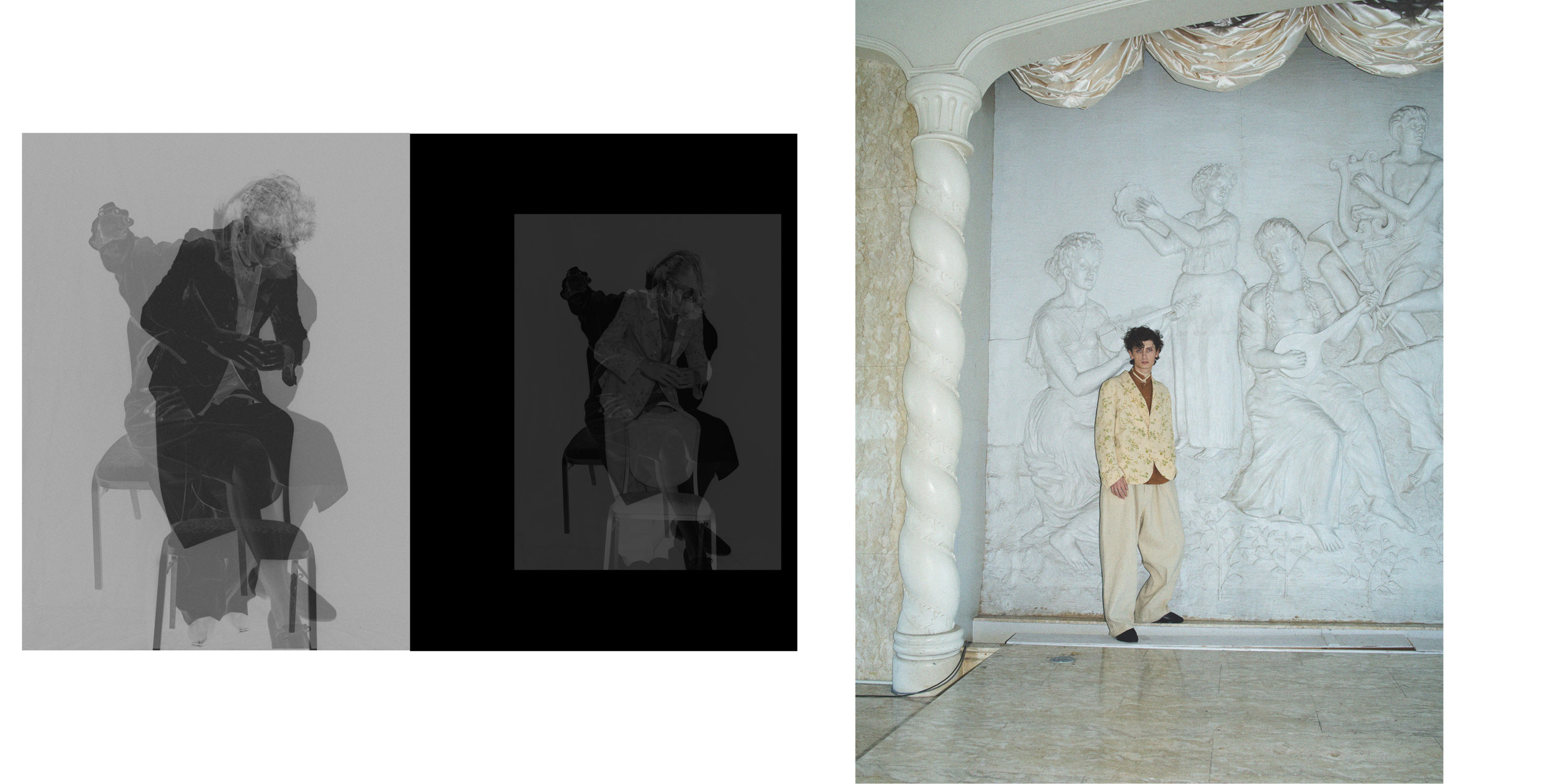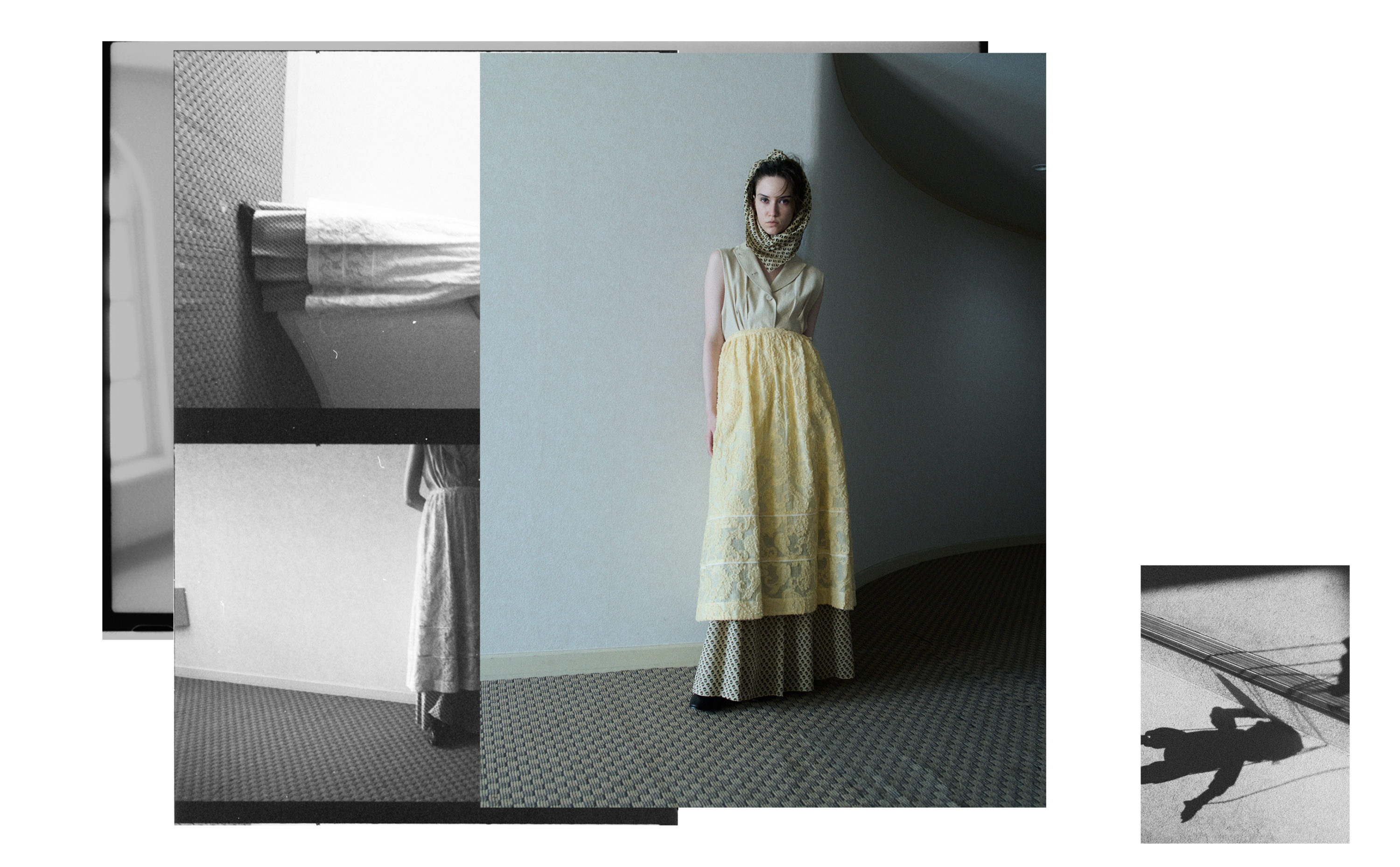 日常の小さな違和感。過去と現在のつながり。という言葉をイメージして、性別、技術や背景などの昔と今を探して並べて取り入れたり引き離したりしながら、今の気分で表現しました。
