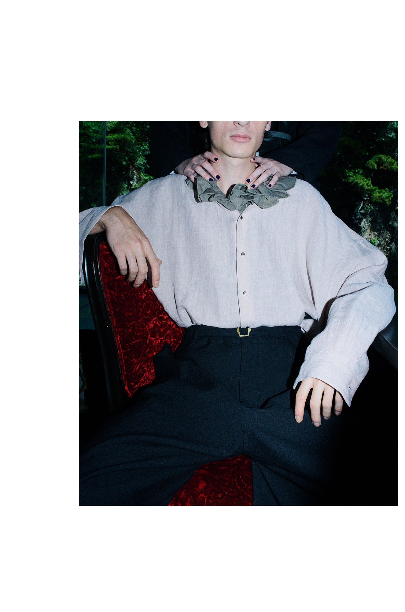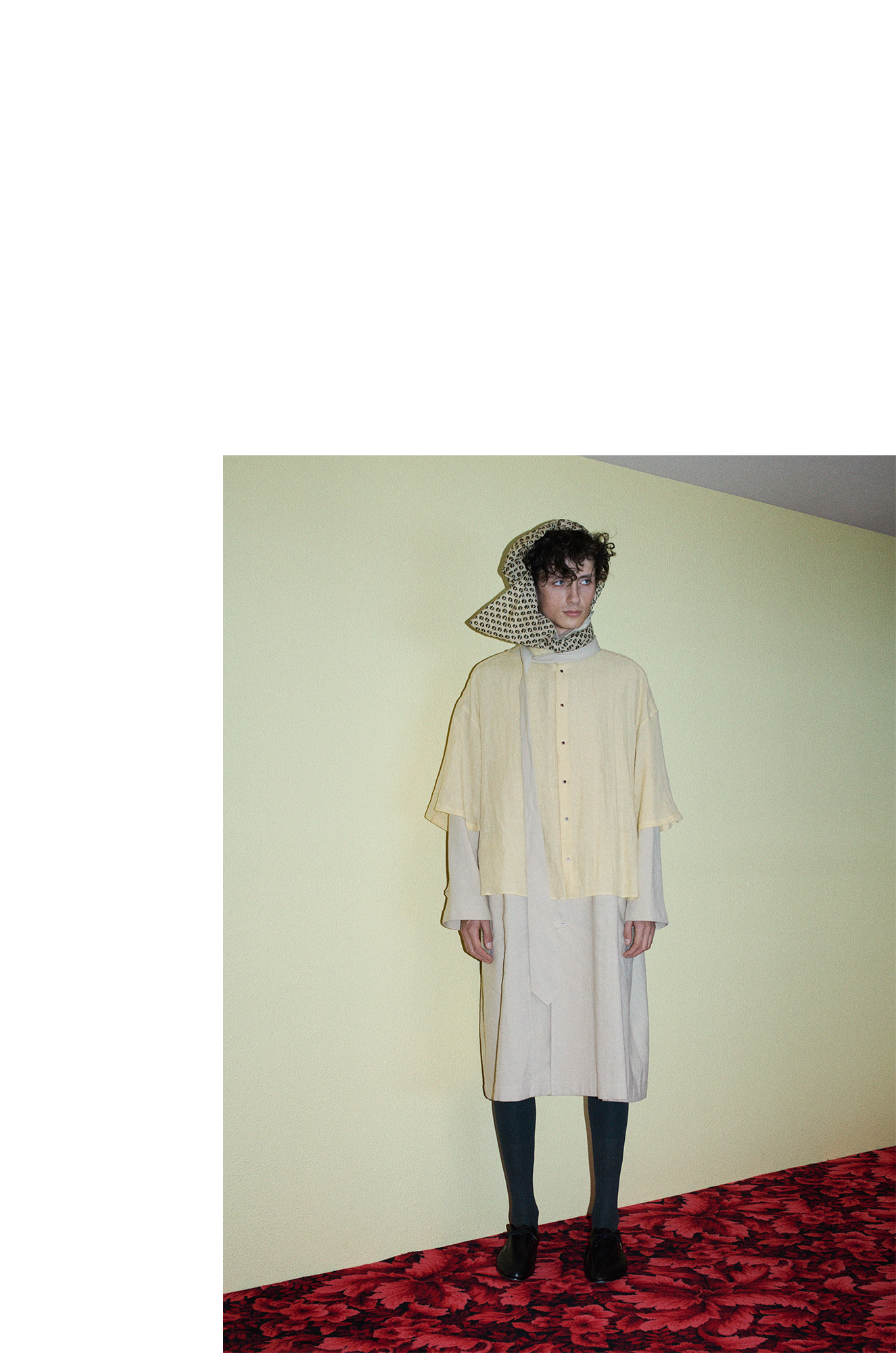 ルックの撮影は今回、動画を中心に撮ることになりました。今季のテーマ”REANIMATION”という言葉の意味から、動きの中に”曖昧な気分”を込められないだろうか。と思ったのです。悲しい、可笑しい、虚しい、など常に変化していく気分を切り取りたいのは、写真であっても動画であっても同じなのだから。